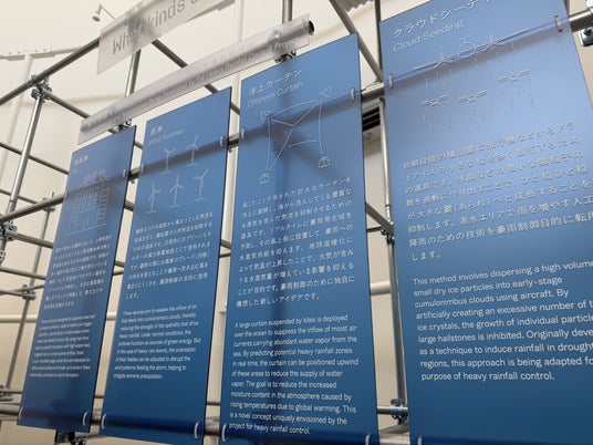 近年頻発するゲリラ豪雨や線状降水帯による被害を減らすため、リアルタイムで降雨の強さや頻度を制御する「豪雨制御技術」の研究を紹介する展示が行われました。