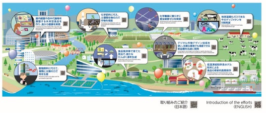 「未来の地球」で、温室効果ガスの発生を抑えながら食料の生産を拡大する取り組みに関して、食料と環境の問題をまとめ、未来の食と農の実現のために開発しているテーマを紹介しています。