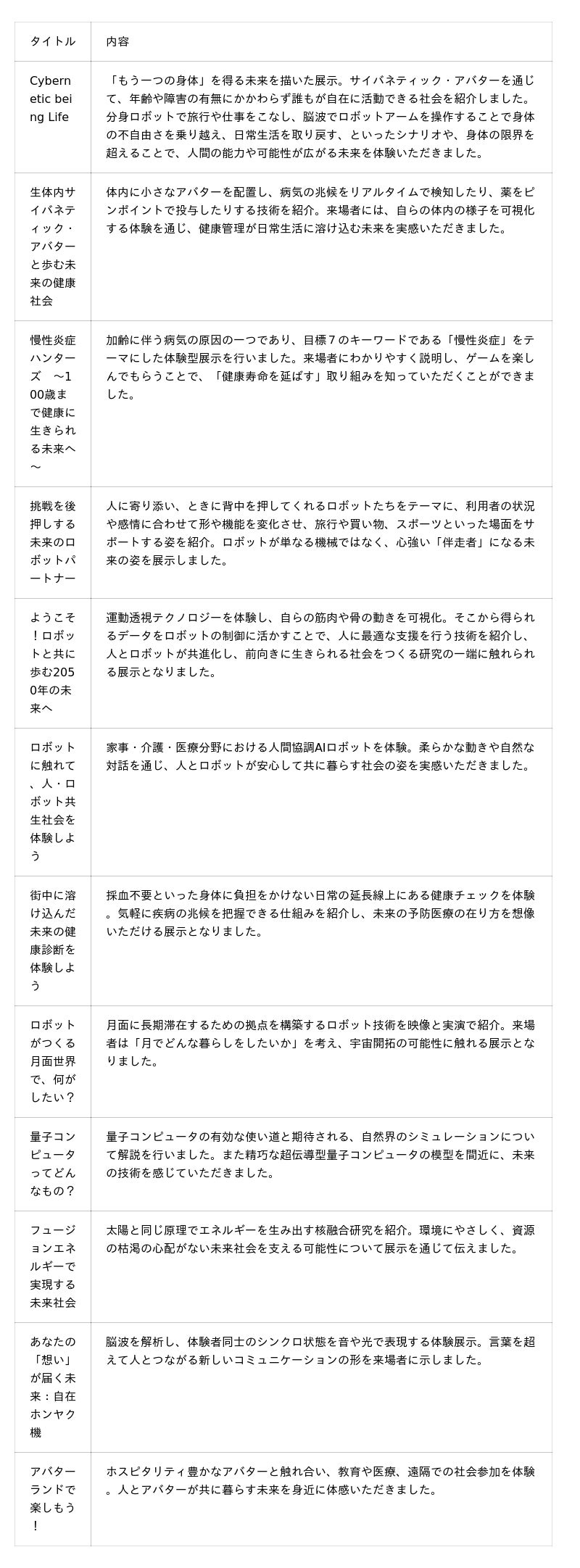 ムーンショットパーク これまでに展示された内容