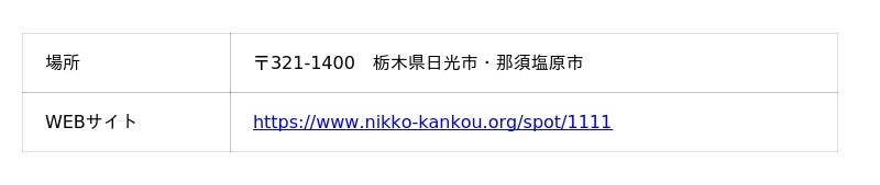 おすすめの見どころ【白滝(しらたき)】白滝は、名前の通り真っ白な水の帯が岩肌を滑るように落ちる姿が美しく、非日常を感じさせてくれます。周囲の紅葉に映えて、静けさの中に凛とした存在感を放ちます。日光市側から塩原温泉へ向かって約10分とアクセスしやすく、散策気分で立ち寄れるのも嬉しいポイントです。
