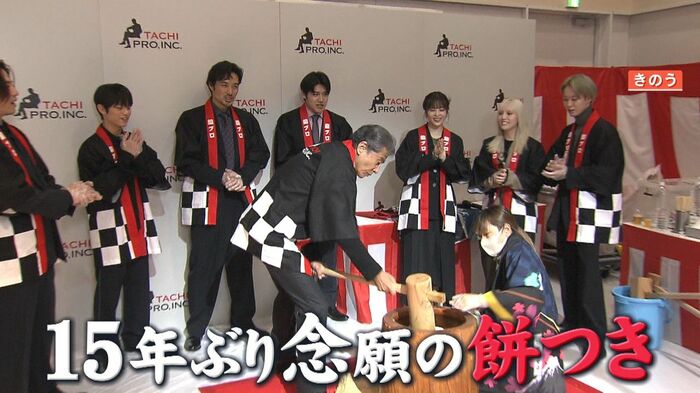 かねてから、石原プロモーション時代の恒例行事の餅つきを行うと心に決めていたという舘さん。