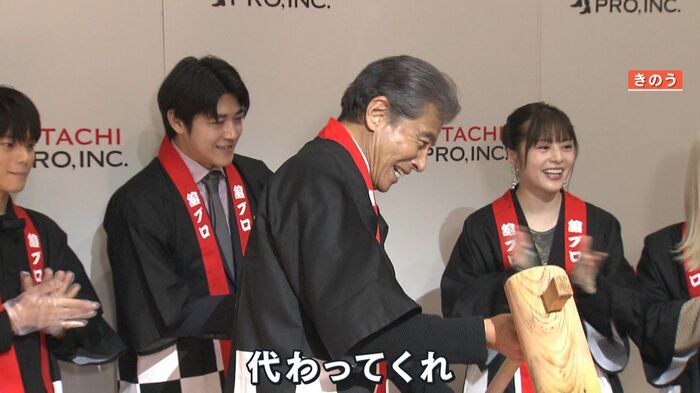 石原プロ時代は、毎年、法被を着てみんなでやったんですけども、これも私がどうしてもやりたいと。きょうは“法被(はっぴ)ーニューイヤー”ということで。
