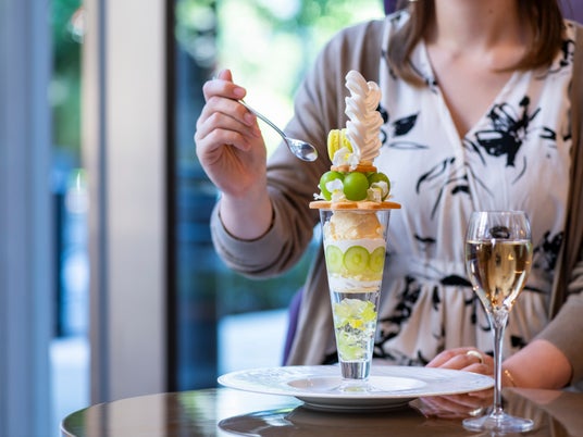 秋の訪れを感じるこの季節。芝公園の散策後やランチ・ティータイムのひとときに、ホテルならではの上質な空間で、瑞々しいシャインマスカットの甘みと爽やかな風味を存分にお楽しみください。