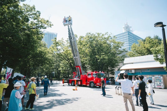 来場した子供たちが目を輝かせていたのが、「車輌展示コーナー」。「もしもFES渋谷」では初展示となる40m級「はしご車」が初日に登場。普段間近で見ることができない40m級「はしご車」を目の前に、「大きい!」「かっこいい!」と声を上げていました。消防隊員が消防作業の際に乗る「バスケット」に乗り記念撮影をした家族は「もしもの時に助けになる車両を感じることができてとてもためになった」と話していました。また、狭い道路でも通行が可能な電動トライクと呼ばれる車両も展示。実際に座席に座り消防隊員気分を味わっている様子でした。