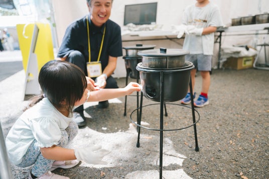 メ~テレ(名古屋テレビ放送株式会社)の「ハピキャン!」がプロデュースする「防災×キャンプ」のコーナーでは、テントや寝袋、ソーラーパネルなどのキャンプグッズを展示。キャンプグッズと防災を紐づけて考える展示をじっくりと見ていた子供は、「テントは家よりはちょっと暑かったけど、水とか食べ物があれば、暮らせそうだなと思いました」と話していました。また、「炊き出し体験エリア」では、電気がなくても炊きたてごはんが食べられるとして話題のタイガー魔法瓶「魔法のかまどごはん」を使ってごはんを炊く体験会に、多くの人が集まっていました。炊きたてのごはんの香りがすると参加者からは「おいしそう!」の声が上がり、試食をした参加者は「電気が使えないことはわかっていても、その事態に直面するとどうしていいかわからないと思う。家にあるものでごはんが炊けるのはとても便利だなと感じました。」と笑顔で話していました。さらに、日野興業株式会社の「防災トイレの大展示場」には、おむつ台付きのトイレやトレーラーハウス型のトイレ、車いすでも使用ができるトイレなど、大小様々な災害用トイレが並び、参加者はそれぞれの特徴を比べながら見て回っている様子でした。
