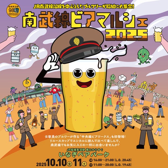 〇株式会社JR中央線コミュニティデザイン(代表取締役社長:小澤 裕)は、東京都稲城市いなぎペアパークにて、2025年10月10日(金)・11日(土)の2日間「南武線ビアマルシェ2025」を開催します。