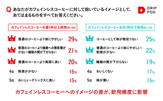 カフェインレスコーヒーへのイメージの差が飲用頻度にも影響している可能性あり。