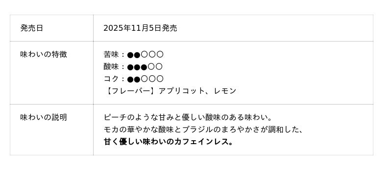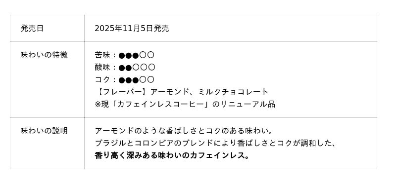 これにより、ドリップポッドの定番カプセルにおいて、カフェインレスコーヒーが2種類となりラインアップは拡充されます。味わいの異なる2種類から選べるようになることで、カフェインの量だけでなく、味わいからもお選びいただける新たな楽しみ方をご提案いたします。