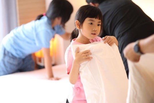 「プロの技を学ぶ」ベッドメイキング体験では、身体全身を使いながらシワのないきれいなベッドを作ることに挑戦。大変ながらも一生懸命に取り組む姿が印象的でした。