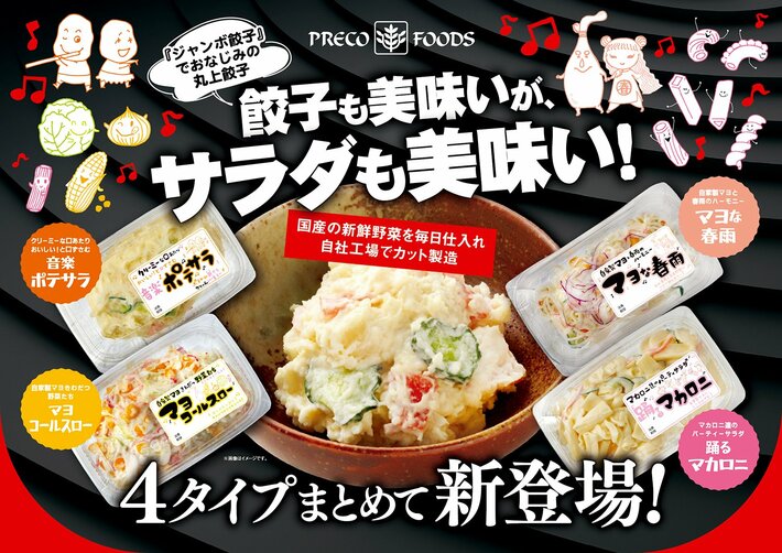 総合食品卸の株式会社プレコフーズ(本社:東京都品川区、代表:高波 幸夫※1)は、新商品『マヨコールスロー』を2025年8月16日より順次、スーパーマーケットにて(※2)販売開始しました。また既存のサラダ商品も『音楽ポテサラ』『踊るマカロニ』『マヨな春雨』として一部原料や、名称・パッケージをリニューアルし販売しています。