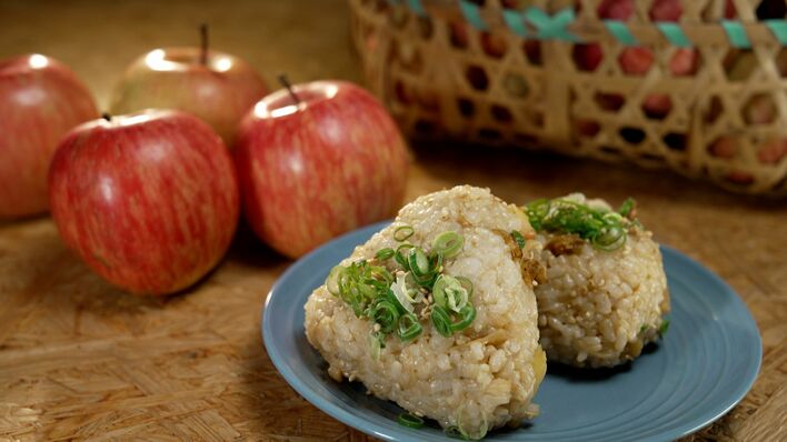 2月25日放送のフジテレビ『くいしん坊!万才』では、青森県弘前市の「りんごのおにぎり」を紹介。