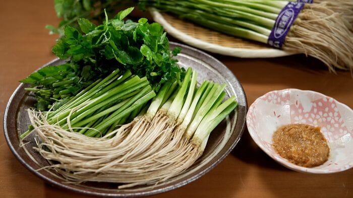根っこは特に甘みが強いそうで、シャクシャクと音をたててせりを食べると、「おいしいわ、これもう!」と満足げな表情になる松岡さん。