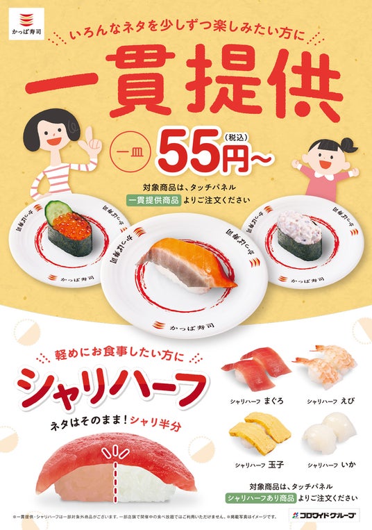 一貫提供とシャリハーフで選ぶ楽しさを! 2025年9月4日(木)~全国のかっぱ寿司にて