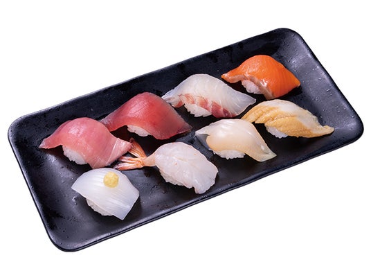 合わせて人気定番の「まぐろ」「サーモン」「えび」などが一皿になった『シャリハーフにぎり12貫 人気ネタ尽くし(税込890円~)』や、「中とろ」「活〆真鯛」「生えび」などが一皿になった『シャリハーフにぎり8貫 厳選ネタ尽くし(税込760円~)』など、ちょっとだけどいろんなネタを食べたい方へ向けたセットもご用意しております。