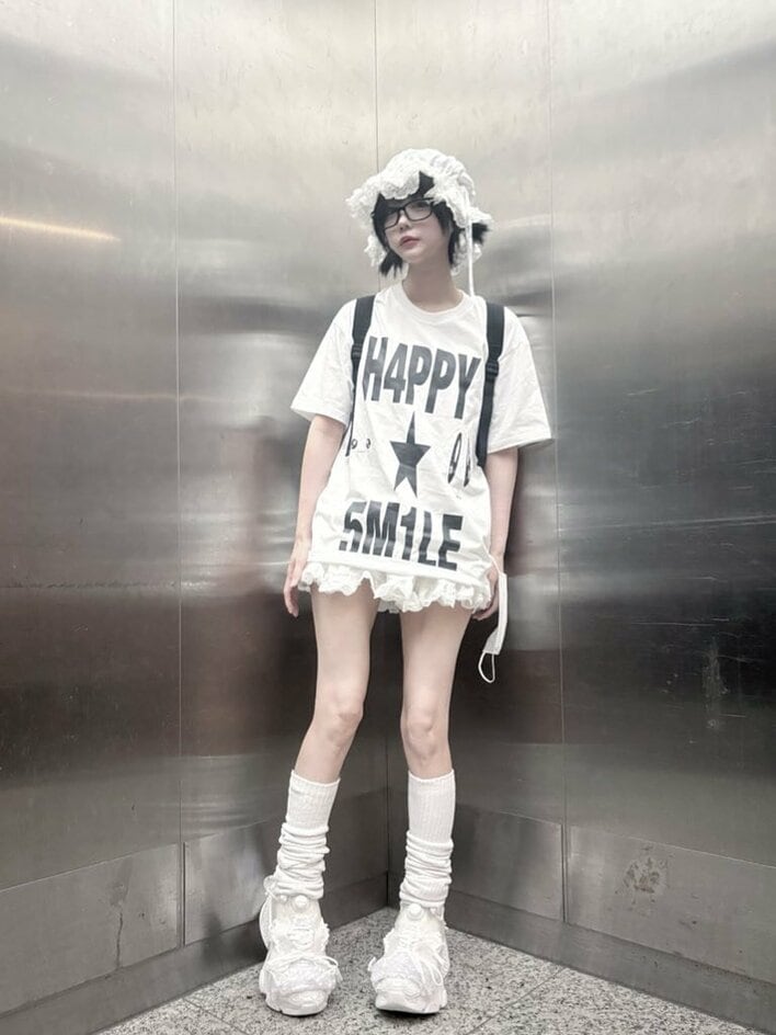 投稿された写真には、オーバーサイズの白Tシャツにすそからフリルをのぞかせたミニ丈にルーズソックスを合わせたコーデをしたあのちゃんの姿が。