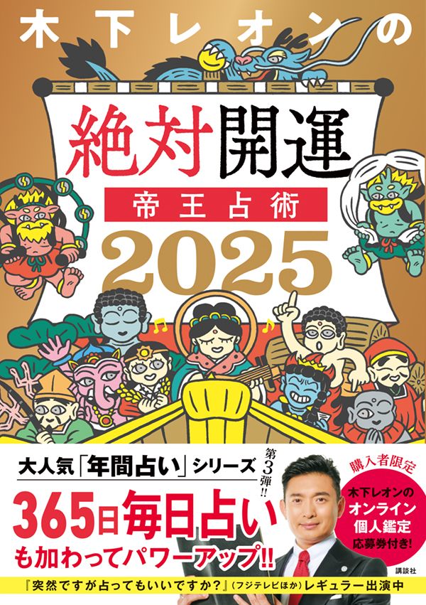 そんなレオンさんの人気書籍シリーズ『木下レオンの絶対開運 帝王占術2025』(講談社)が今年も発売。2025年の運勢を、12の帝王サイン(生年月日で導き出す神仏)ごとに、詳しく鑑定しています。