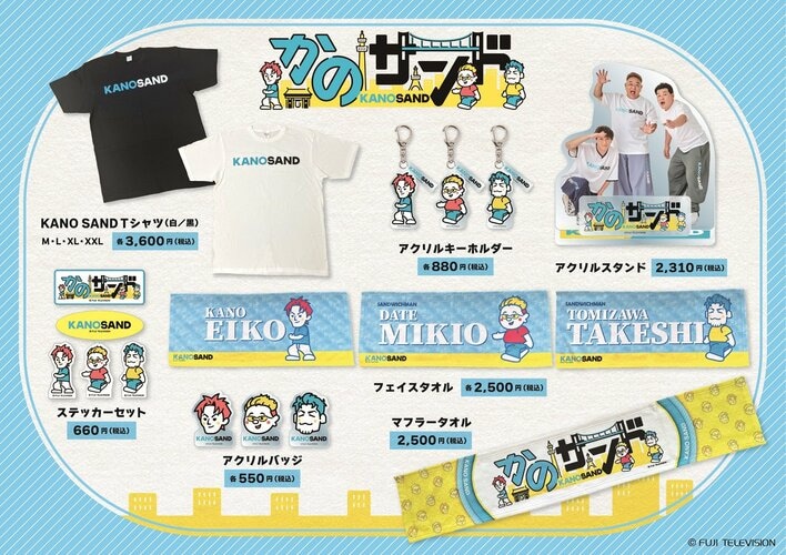 また、9月1日(月)より、フジテレビオフィシャルWEBショップ「フジテレビe!ショップ」やフジテレビショップなどの一部店舗にて、『かのサンド』の番組公式グッズが発売中!
