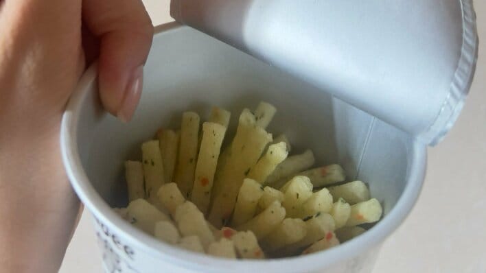 入山さんが公開した写真を見てみると、指でつまんで箱から取り出したじゃがりこは、ウェーブがかかって3本くっついた状態で出現!これは当たりなのでしょうか…?