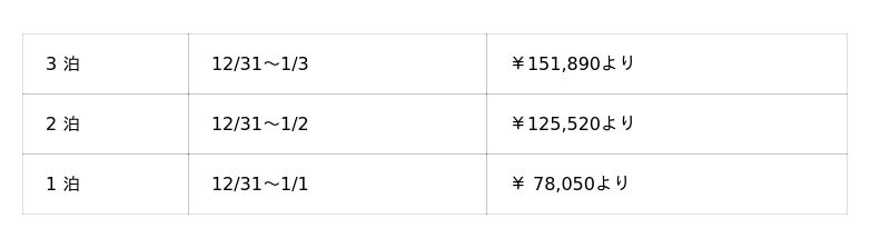 2025年12月31日(火)から3泊 1室2名さまご利用時 1名さま ¥150,840 より