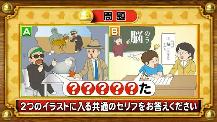最後は、共通セリフ問題。次の2つのイラストに入る共通のセリフを答えてください。