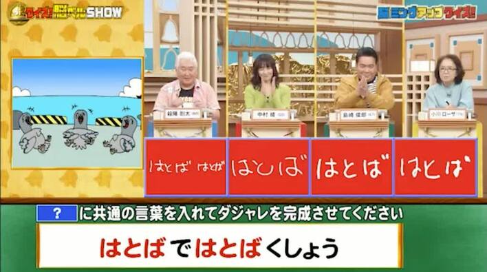 正解は「はとば(波止場でハト爆笑)」。見事全員正解。