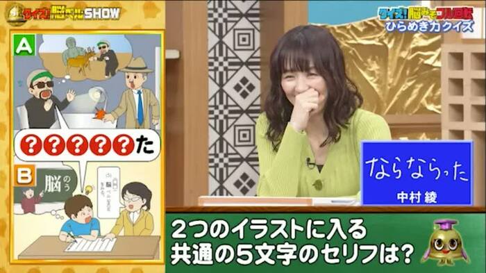 中村さんの答えは、「ならならった」。漢字にすると「奈良習った」?残念ながら不正解。