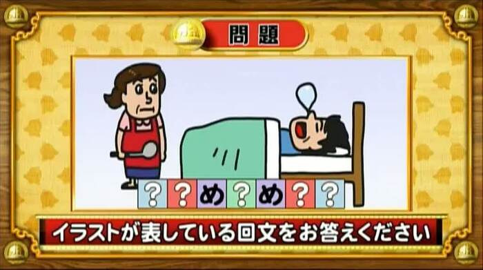 最後は、イラスト回文の問題。次のイラストが表している回文を答えてください。