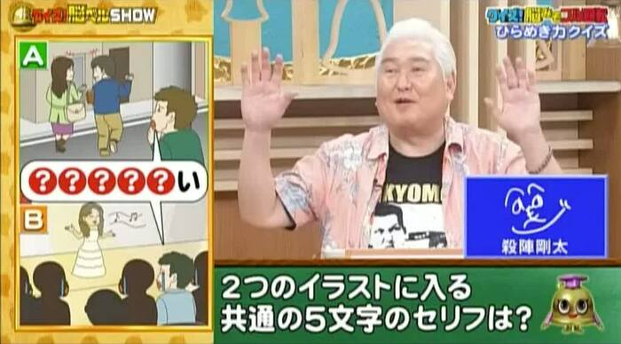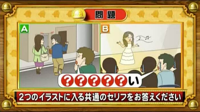 次は、共通セリフ問題。次の2つのイラストに入る共通のセリフを答えてください。