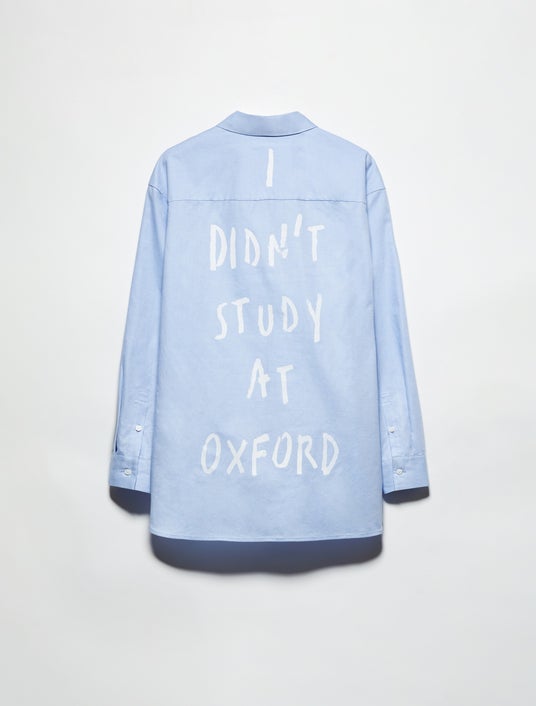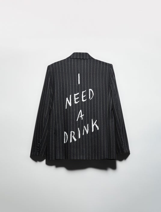 本コレクションの主役となるのは、テルツィーニらしいユーモアあふれるスローガン。(「I WAS RIGHT(ほらね、正しかったでしょ!)」や、「HEARTBREAKER(モテ過ぎ注意)」、「SO FAR SO GOOD(今のところ順調)」)など、アイテムごとに、意外性のある言葉遊びがちりばめられています。その他、ボタンダウンのシャツの背中にあしらわれている「I DIDN'T STUDY AT OXFORD(オックスフォード卒ではありません)」や、チェック柄のシャツにはダブルミーニングを含んだ「I'LL CHECK AND LET YOU KNOW(チェックしてお知らせします)」というフレーズ。セーターやT シャツは、前面に「GOODVIBES(いい感じ)」、背面に「OR GOOD BYES(それともバイバイ)」が刺しゅうで施され、フーディーには「I'D RATHER STAY HOME(むしろ家にいたい)」というストレートなメッセージが表現されています。『ゴッドファーザー』や『スカーフェイス』などのギャング映画にインスパイアされたピンストライプスーツには、「I HOPE YOUR EMAIL WON'T FIND ME(あなたのメールが私に届かないことを祈ります)」や「I NEED A DRINK(一杯飲みたい)」と言った、アイロニーに満ち溢れたメッセージが添えられています。