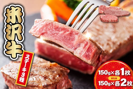 米沢牛 ステーキ3種食べ比べセット寄附金額:44,000円~