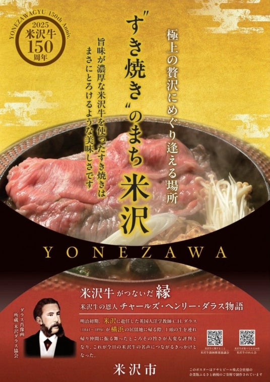 山形県米沢市(市長:近藤洋介)は、国内屈指のブランド牛「米沢牛」の美味しさが知れ渡ってから今年(2025年)で150年を迎える節目の年を記念して、米沢牛の多彩なラインナップをふるさと納税返礼品に追加しました。