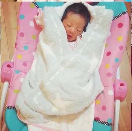 生まれたばかりの次女を大切にくるんでいたモコモコ。