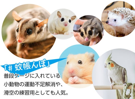 フクロモモンガやハムスター、デグーなどの小動物を蚊帳の中で遊ばせる“蚊帳んぽ”用途でSNSでも話題になっています。