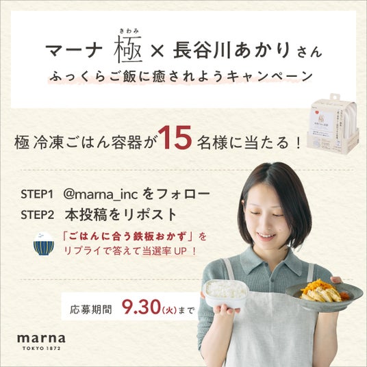 マーナ公式Xアカウントでは、「ふっくらご飯に癒されよう」をテーマにプレゼントキャンペーンを実施します。