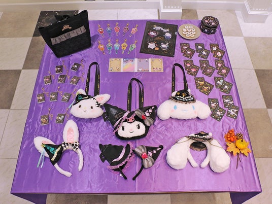 ぬいぐるみパース、魔法使いのコスチュームを着たキャラクターたちが描かれた豆本チャーム、魔法使いのステッキをモチーフにしたステッキチャームなどが登場。ハロウィーン期間ならではのアイテムが目白押しです。