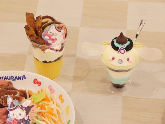 定番のハローキティカレーがハロウィーンバージョンになった「ハローキティの魔女っ子カレー」やパンプキンサラダがハロウィーン気分満点の「ポチャッコのとろたま★チーズハンバーグプレート」、明太子ソースの魔法がかかった「ウィッシュミーメルの明太子マヨソース唐揚げ&ローストビーフ」などが登場。また、魔法使いのはなまるおばけが届ける「はなまるおばけ魔法仕立てのかぼちゃと大学芋パフェ」や、色が変化する魔法のドリンク「シナモロールのぶどうゼリーソーダ」などデザートメニューもご用意しています。お腹も心もハロウィーン気分を満喫できる様々なメニューをお楽しみください。