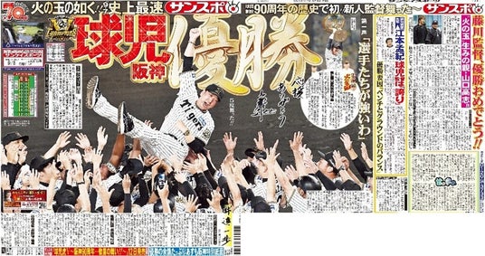 「応援紙面」は日本一への第一歩であるクライマックスシリーズファイナルステージ初戦の10月15日(水)にサンケイスポーツ大阪本社版に掲載予定です。