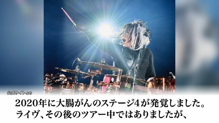 「2020年に大腸がんのステージ4が発覚しました。ライヴ、その後のツアー中ではありましたが7回の手術と抗がん剤治療、放射線療法を併用してライヴを続行してきました。」(真矢Official Instagramより)