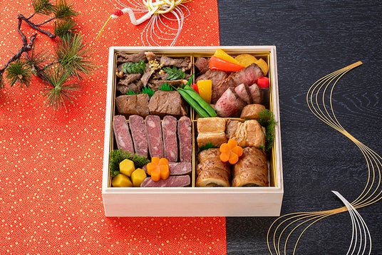 低温真空調理でしっとり柔らかな国産牛ロースの西京焼きや希少部位イチボを使用した国産牛のローストビーフに加え、牛頬肉赤味噌煮込み、三段ばら豚角煮、鶏けんちん艶煮など、味わいも食感も異なる多彩な肉料理を贅沢に詰め込みました。