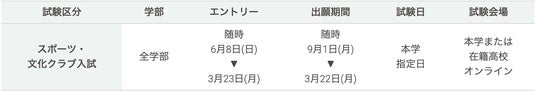 - 対象者:スポーツ・文化クラブ入試合格者のうち
