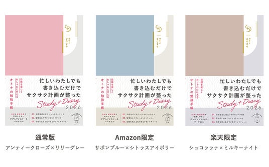 ■2026年版も3色展開! Amazon限定カラー、楽天ブックス限定カラーにはスタイリッシュなデザインのオリジナル下敷きが付いてくる!