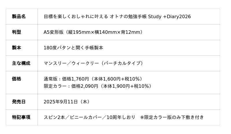 ■働く女性から絶大な支持! 楽しくおしゃれに計画を立てて目標達成できるオトナの勉強手帳の2026年版が発売