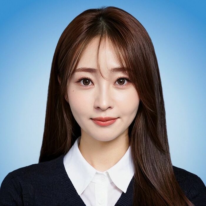 公開された写真には、青い背景で鎖骨が見える黒いトップスを着用し髪の毛を結びパッチリとした目で映るものや・・・。