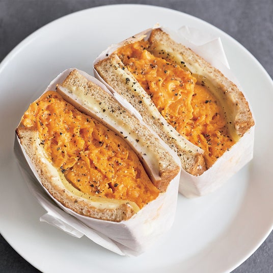 コク深い「太陽卵(R)」を贅沢に使用したオムレツと、ロースハム、ゴーダチーズをサンドです。