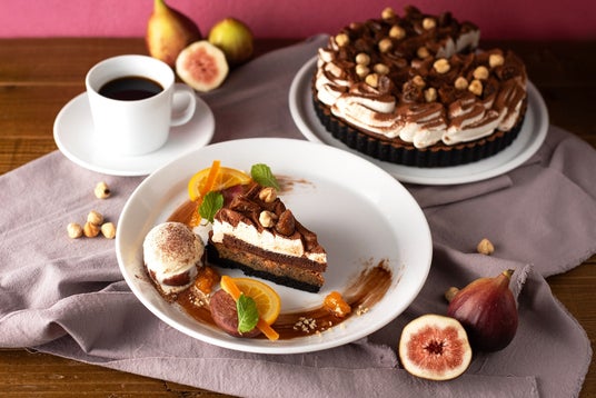 コーヒーシロップを忍ばせたココアタルトに、香り高いティラミスクリームを合わせドライいちじくとヘーゼルナッツをトッピングした秋らしいティラミスタルトです。