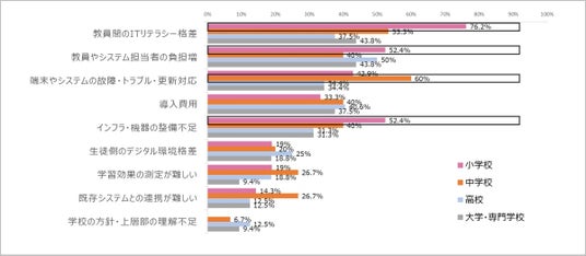 調査の結果、小学校では教材DX、大学・専門学校では課題や授業配信DXがそれぞれ8割超に達するなど、学校種別によってDXの進展や課題に差があることが明らかとなりました。