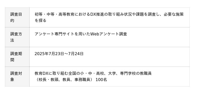 eラーニング専門ソリューション企業、株式会社デジタル・ナレッジ(本社:東京都台東区、代表取締役社長:はが弘明)が運営するeラーニング戦略研究所は、教育DXに取り組む全国の小・中・高校、大学、専門学校の教職員100名を対象に、実際の取り組み状況や課題を調査し、その結果をまとめた報告書を2025年9月に公開いたしました。