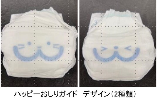 ・さらに、育児の合間にほっと笑顔になれるような、「ハッピーおしりガイド」デザインを採用。