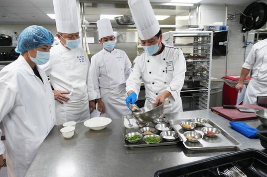 現地シェフたちによるレシピ研修や試作、使用する調味料の選定について確認しながら、厨房で実際に調理もさせていただきました。日本では手に入りにくい食材や調味料もあり、代用できるもののレクチャーや台湾と日本の嗜好性、ブッフェの演出案、メニュー構成などについて意見交換を行い、2日間にわたり細かい点まで確認作業を重ねました。