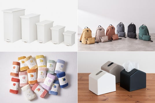 「KEYUCA両開ダストボックス」、シリーズ累計販売数11万個以上を突破した機能性抜群「N撥水ライトシェルリュックM」、食卓の上はもちろん、洗面などの水回りでも安心して使え、累計販売台数57万個以上売れている大ヒット中の「Moi コンパクトティッシュケース」、花の色をテーマにしギフトにもおすすめ「抗菌防臭Flowerフェイスタオル」など、便利で機能的な商品が目白押しです。
